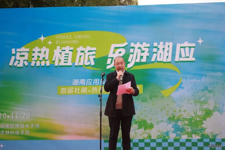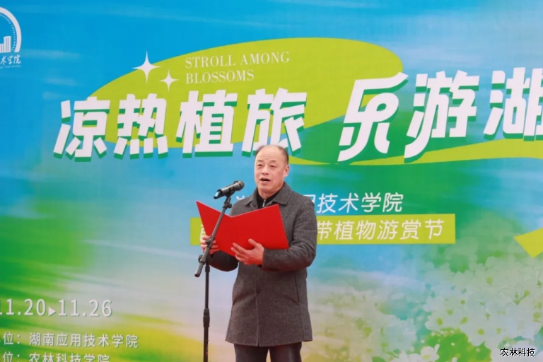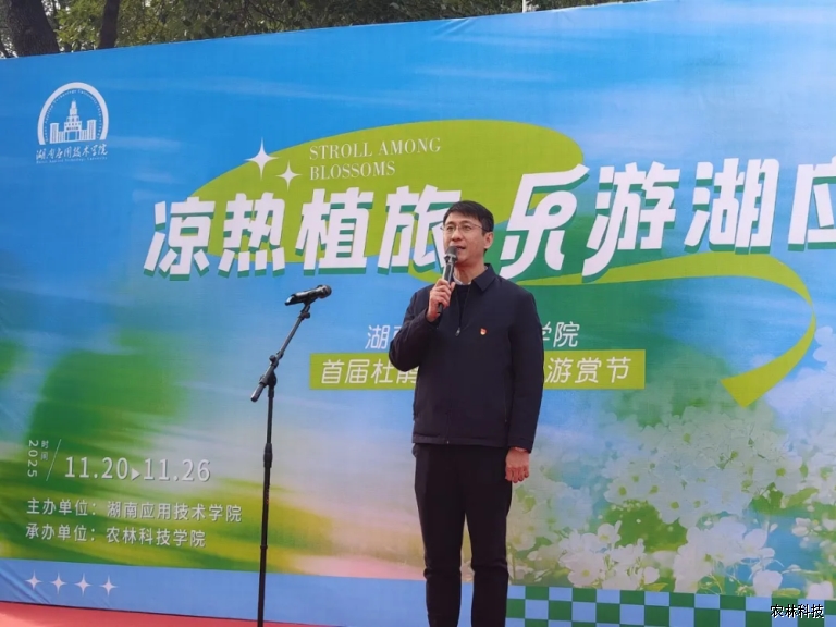 为丰富校园文化生活,彰显农林科技专业特色,由湖南应用技术学院主办、农林科技学院承办的“凉热植旅,乐游湖应”主题花卉观赏活动,于2025年11月20日在学院实训基地正式拉开帷幕,活动将持续至11月26日,每日8:30—17:00面向师生开放。开幕式由王文龙副校长主持,出席开幕式的领导包括学校党委书记乔臣、校长李旋旗、副校长李敏、副校长丁春茹以及学校和各二级学院相关领导。