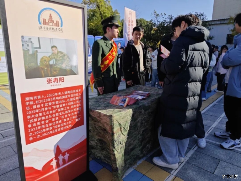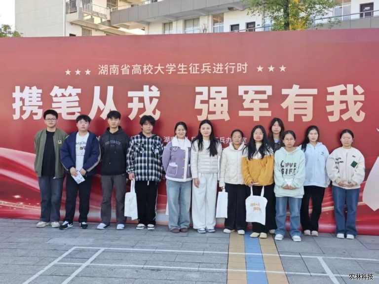 为积极响应国家征兵号召,鼓励优秀大学生投身国防事业。11月28日下午两点半,湖南应用技术学院征兵宣传活动在28栋前坪与43D二楼同步开展。农林科技学院积极响应,由党总支副书记杨治华带队,学院教师代表及各班级学生代表共同参与,活动现场氛围热烈高涨。