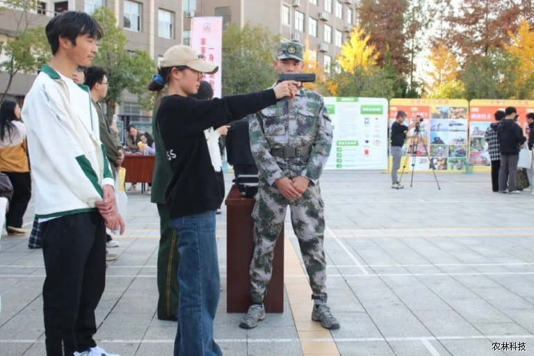 在活动现场,射击体验区率先点燃同学们的参与热情。在专业人员的指导下,同学们有序排队、跃跃欲试,杨治华副书记也亲自参与其中,与同学们同场体验射击乐趣,用实际行动传递对征兵工作的支持,进一步拉近了与同学们的距离,让活动氛围愈发浓厚。