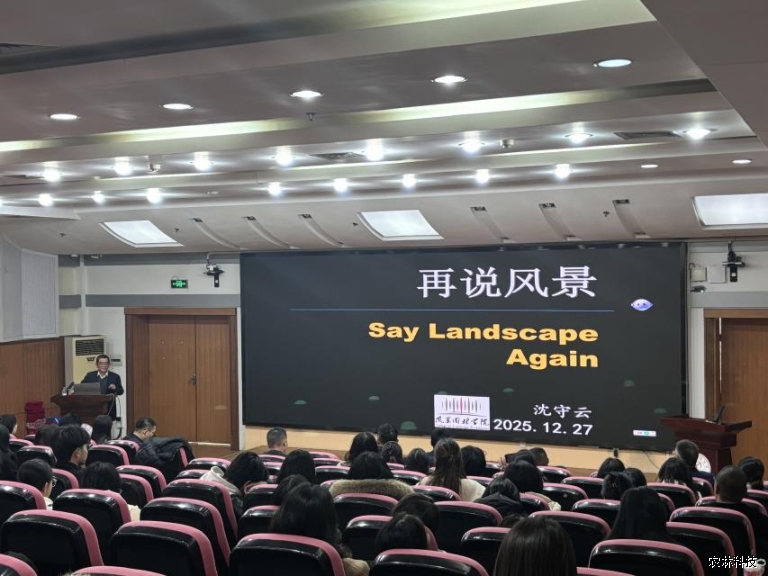 活动现场,全体师生齐聚一堂,认真聆听湖南省风景园林学会理事长、中南林业科技大学沈守云教授带来的学术报告《再说风景》。报告深入浅出,从学科本源到发展前沿,从理论探索到实践应用,深刻解读了自然生态与城市建设的融合路径,为在场师生带来一场思想盛宴,让大家对风景园林学科的内涵与使命有了更为深刻的理解。